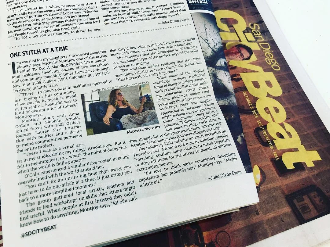 SAN DIEGO CITYBEAT | TO DO • A MENDING PROJECT TO DO • A MENDING PROJECT featured in San Diego CityBeat ! Guest UserOctober 11, 2018 Facebook0 Twitter LinkedIn0 Reddit Tumblr 0 Likes